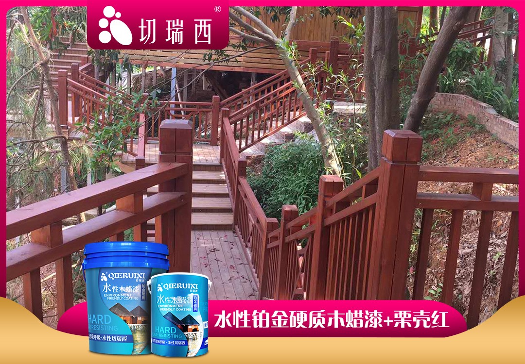 案例介绍:户外木栈道,凉亭和葡萄架以及家具等都可以使用水性漆进行翻新保护。户外木制品因为收到风吹日晒雨淋的侵蚀和风化,需要打磨后才能进行施工。水性漆干燥速度块,漆膜饱满丰厚,可以防水防腐,保护木制品不受自然风雨的侵蚀。施工时可以选择刷涂或者喷涂,如有需要可以加水稀释,比例不能超过8%。