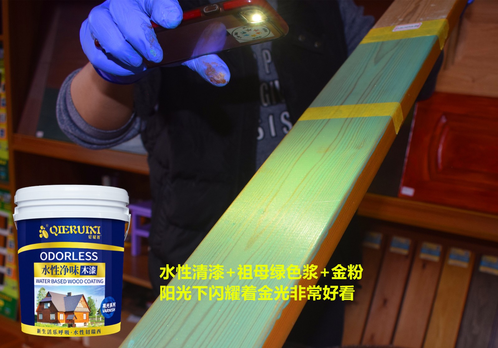 案例介绍:水性漆可以用纯净水稀释,也可以加入适量的金粉进行调色,做透金效果。水性漆调金粉时可以使用透明清漆调,也可以加入水性色浆和金粉一起调。使用时只要充分搅拌即可施工,施工建议刷涂。